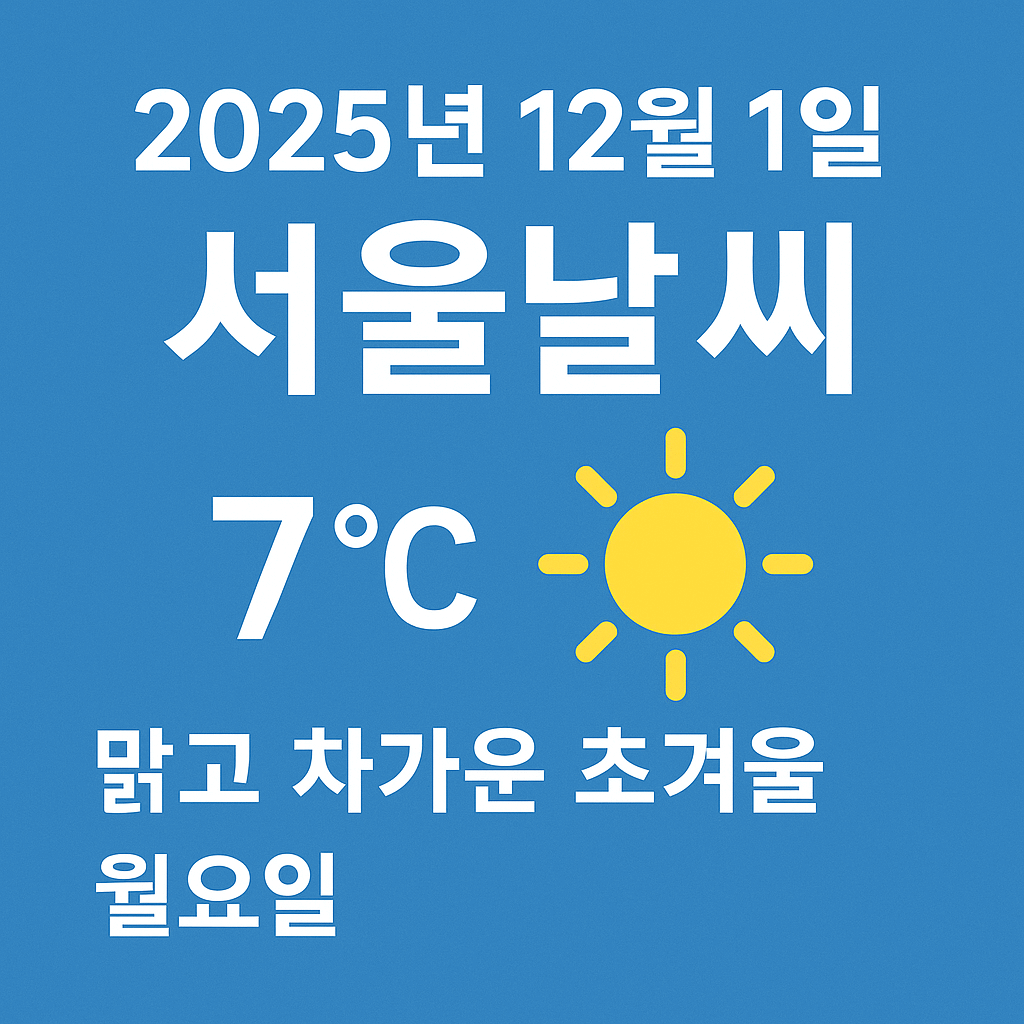 2025년 12월 1일 서울날씨 – 초겨울의 맑고 차가운 월요일 12월의 첫날인 오늘 서울은 초겨울 특유의 차갑고 맑은 날씨가 이어지겠습니다. 새벽에는
