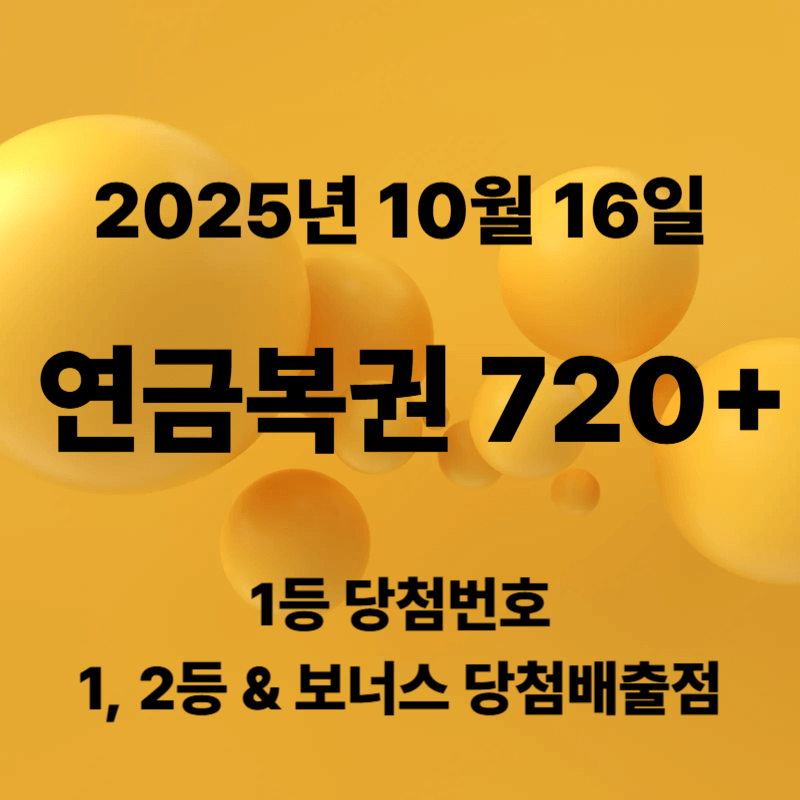 연금복권 720+ 285회 당첨번호 발표 추첨일: 2025년 10월 16일(목) 285회 연금복권 720+ 결과를 정리했습니다. 아래 표에서 1등, 2등, 보너스 번호를