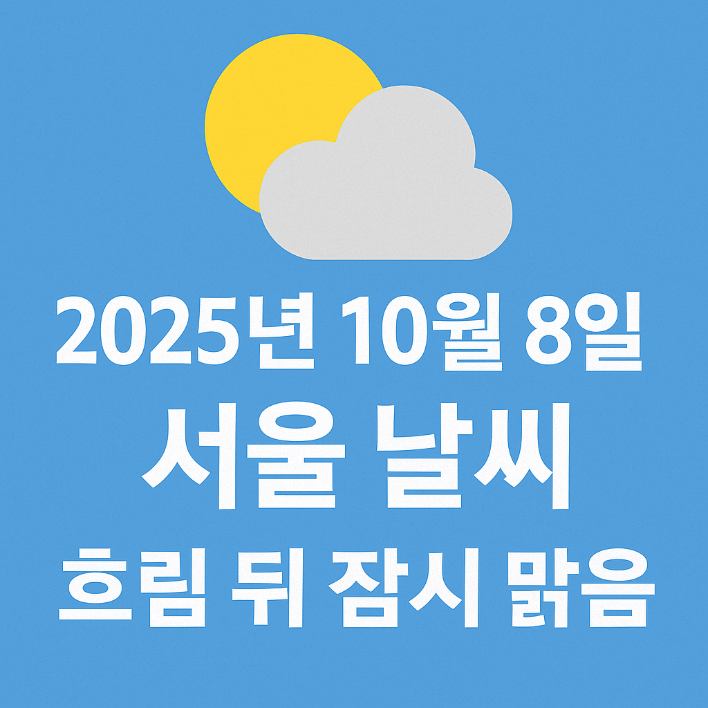 2025년 10월 8일 서울날씨 – 흐림 뒤 잠시 맑음, 가을 전환의 하루 오늘은 2025년 10월 8일(수요일) 서울의 날씨를 중심으로, 시간대별