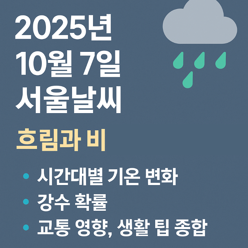 2025년 10월 7일 화요일 서울날씨 – 흐림과 비, 일상 영향 분석 안녕하세요! 오늘은 2025년 10월 7일 화요일 서울날씨를 시간대별 예보부터