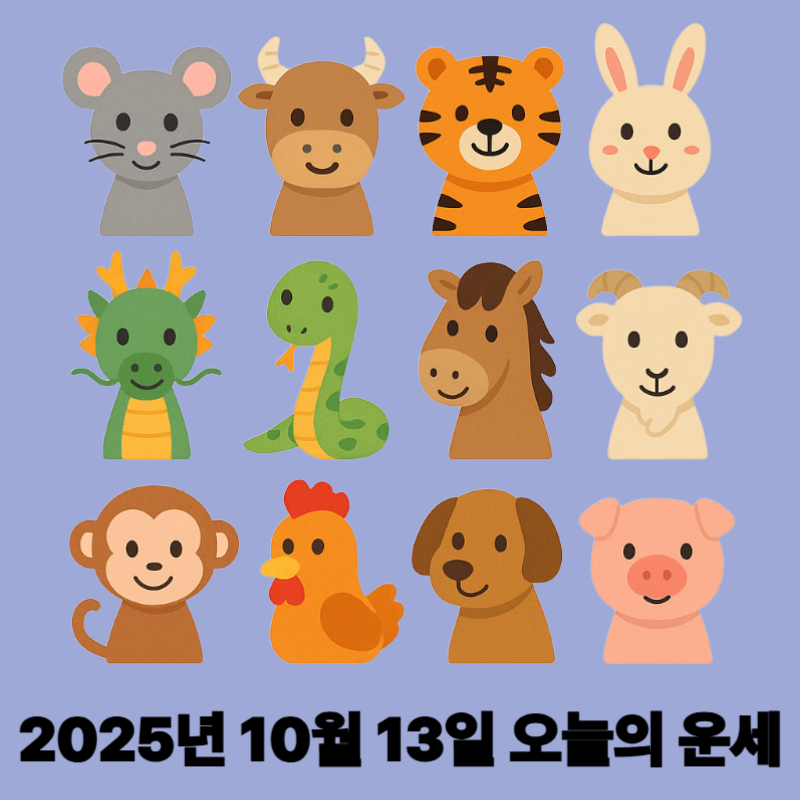 2025년 10월 13일 월요일 띠별 오늘의 운세 – 총운·건강운·재물운 완전 해설