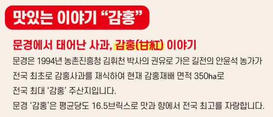 문경시 각 농가가 참여하는 판매 부스에서 감홍·부사 등 품종별 사과를 시식하고 구매할 수 있습니다. 상자 단위 대량 구매부터 낱개 구매까지 가능하고, 꿀팁은 여러 농가를 돌며 맛과 식감을 비교해보는 것