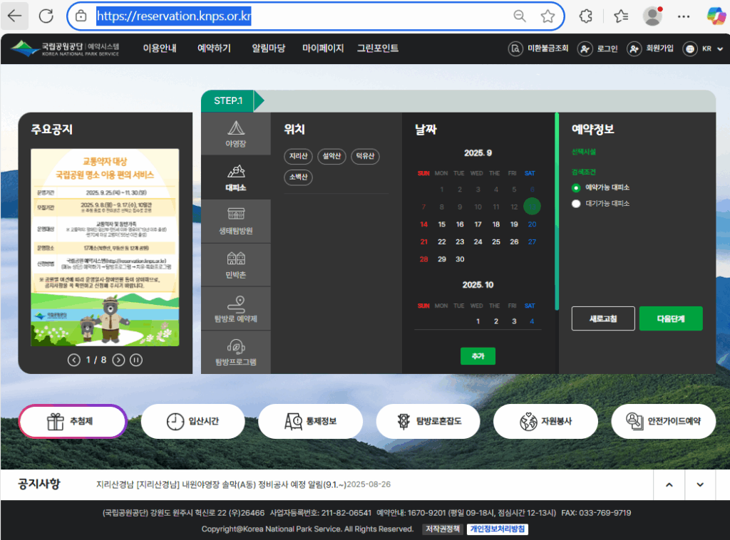 🌲 예약 바로가기: https://reservation.knps.or.kr/