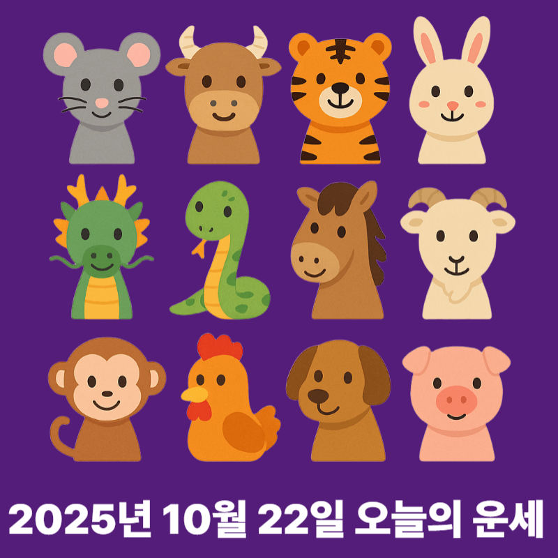 2025년 10월 22일 수요일 띠별 오늘의 운세 – 총운·건강운·재물운 완벽 해설 수요일인 오늘은 변화의 기운이 강하게 흐르는 날입니다. 새로운 시도를